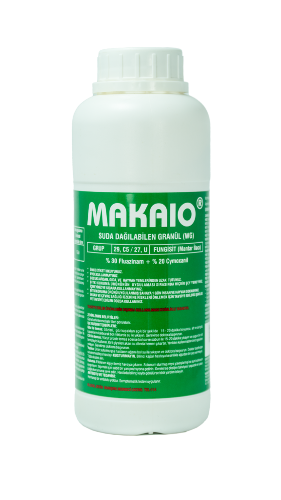 Makaio® is a blend of Fluazinam (a2,6-dinito-Aniline) and Cymoxanil (acyanoacetami e-oxime) that is potent for the control of a wide variety of diseases.